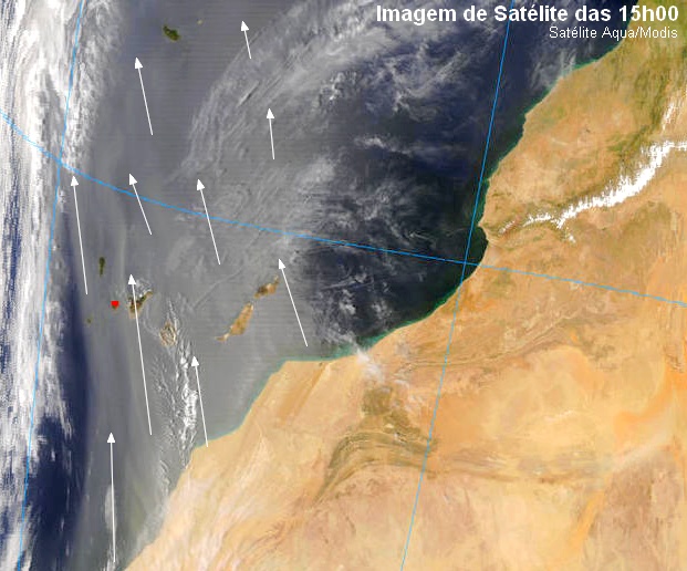 Imagem de satélite mostra poeira do Sara a chegar à Madeira 26 Abril 2008 Previsão para os próximos dias